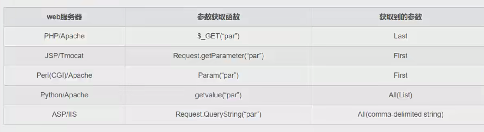 HTTP 参污染:如果 WAF 没有对多参数进行多次过滤,则只会识别其中一个