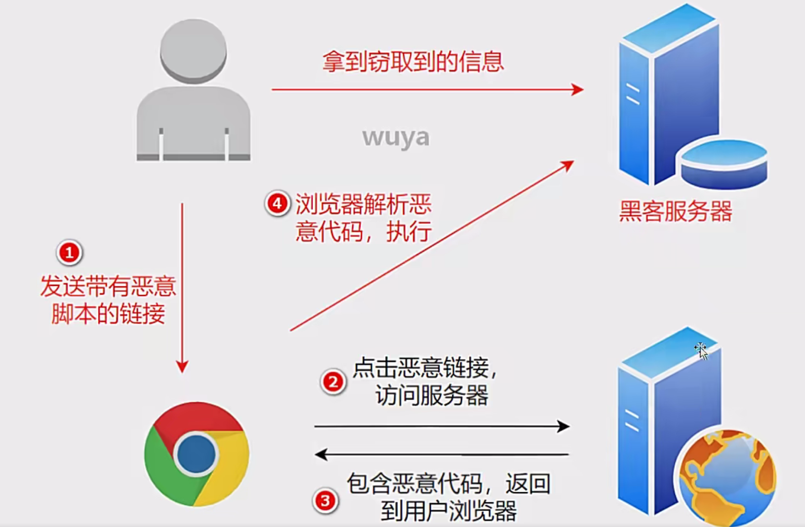恶意代码未被服务器储存,每次触发漏洞时,都将恶意代码通过 GET/POST 方式提交,用户输入的内容被直接输出在 HTML 中,然后触发漏洞。