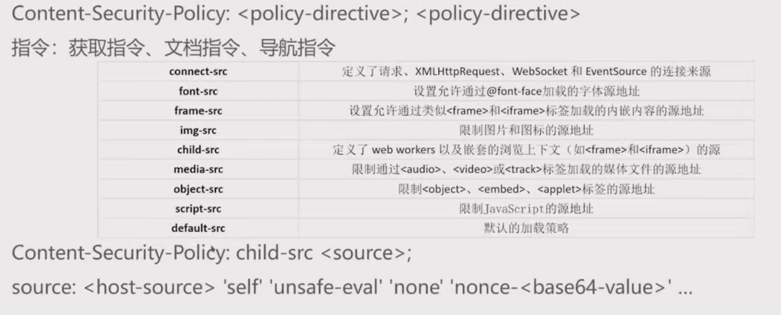 CSP (Content Security Policy) 是一个额外的安全层,用于检测并缓解某些特定类型的注入,包括 XSS 和数据注入等。