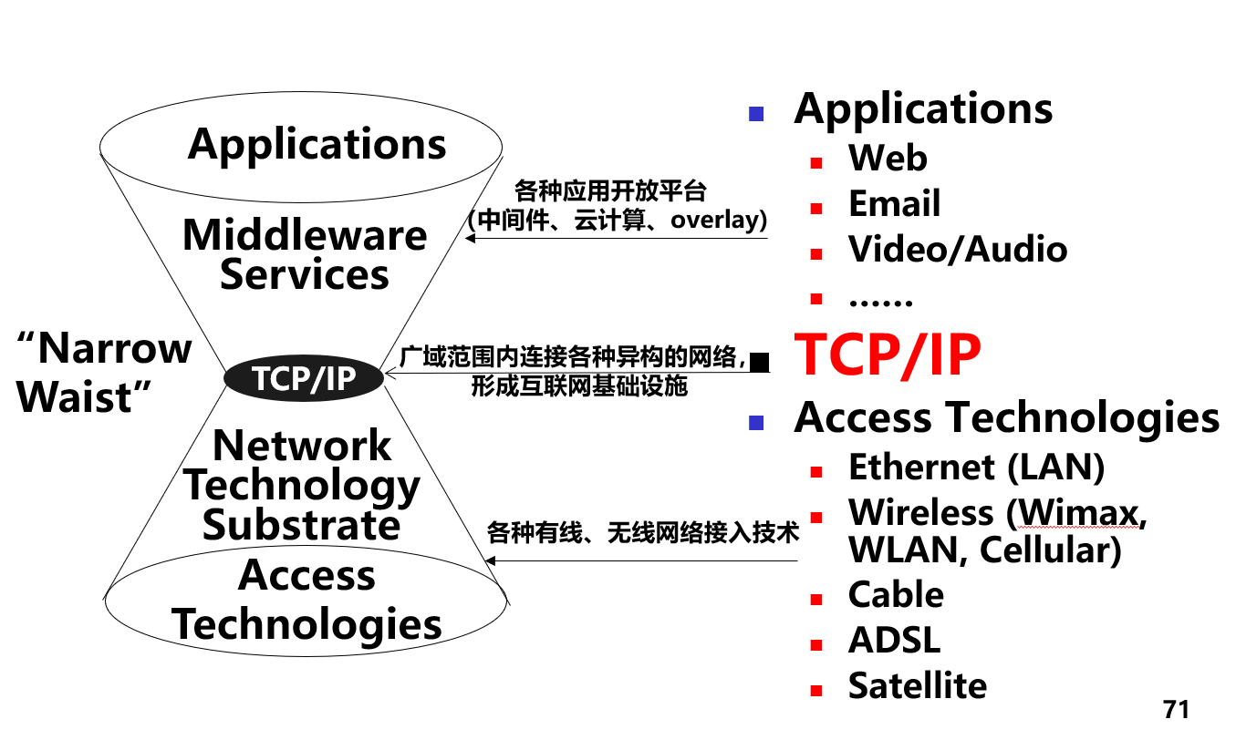 在网络体系结构中, 采用分层的思想对网络构建问题进行分解, 分层.