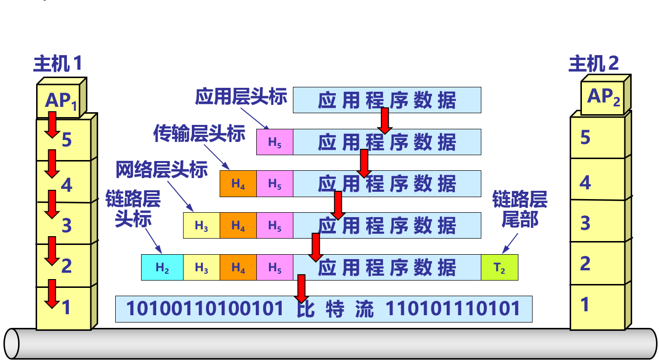 - 协议分层: 为了降低设计的复杂度, 增加网络的可扩展性, 具有概念化, 结构化等优点, 利于导入新业务.