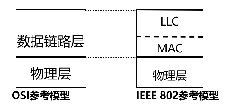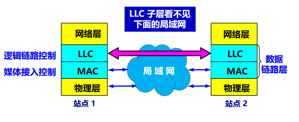 - 对于相同的 LLC 子层, 可以提供不同的 MAC 子层. 例如, 常用以太网, 802.11 无线局域网等局域网具有相同的 LLC 子层, 只是 MAC 子层不同.
