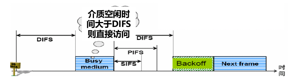 发送方在 DIFS 时间内侦听到信道空闲直接发送数据帧, 不执行退避算法.