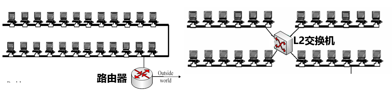 (广播域: 局域网内目的地址为广播地址的数据链路层帧会被所有的网络节点接收和处理. )
