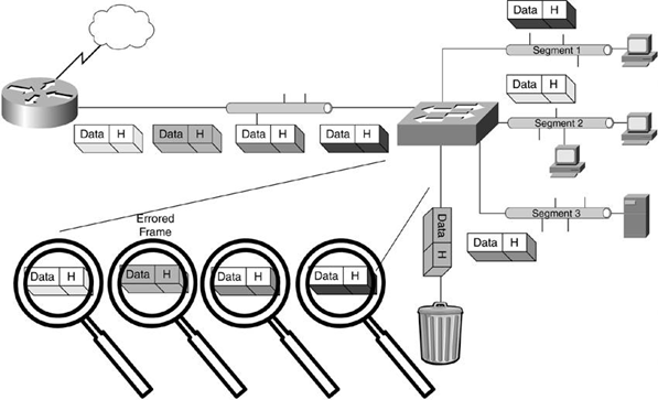 存储转发: 从输入端口接收完整帧放入内存, 然后对帧进行校验, 若正确, 则根据目的 MAC 地址得到输出端口, 在输入和输出端口之间建立连接转发帧.
