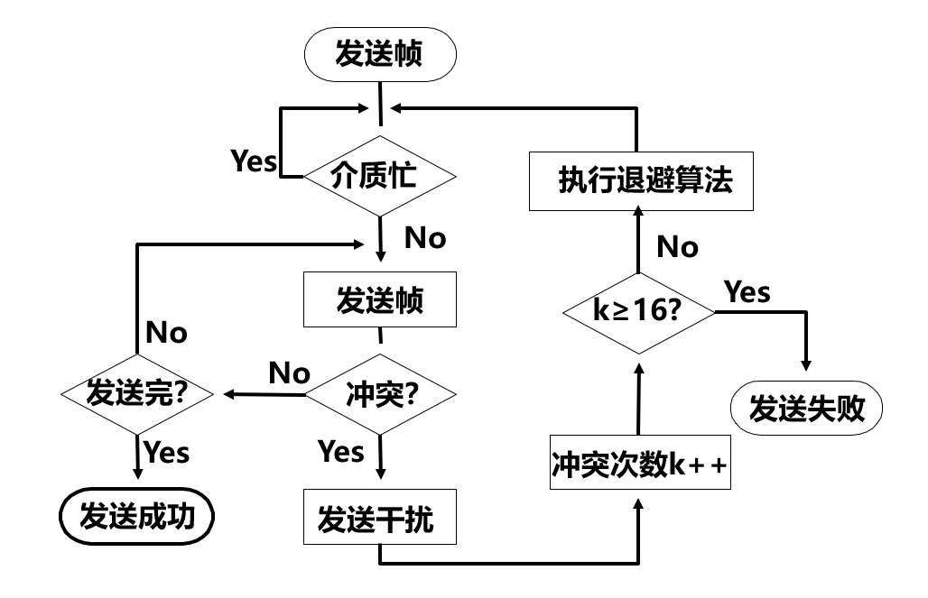 - 重传计数器到达一个设定的门限值时, 发送方将放弃发送数据帧, 并且返回一个错误.