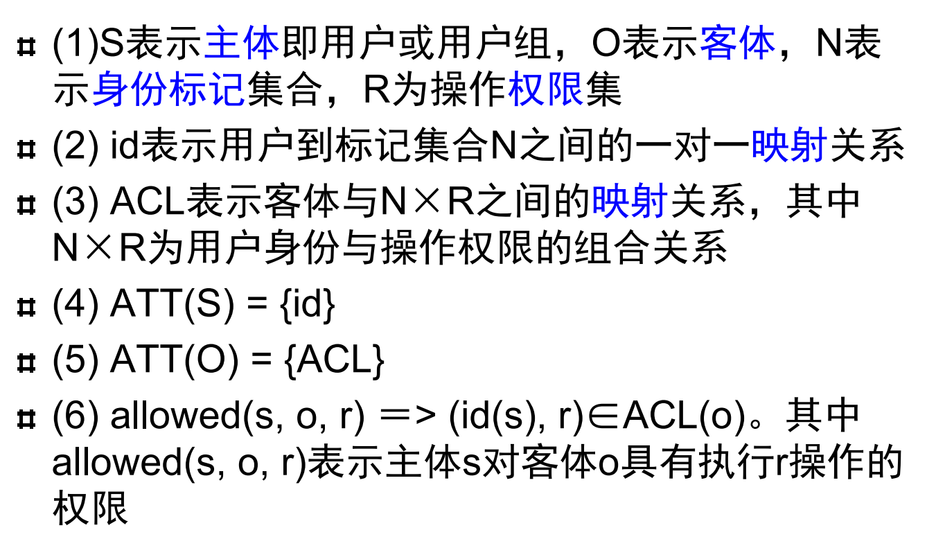 本质是对访问矩阵模型的扩充, 能够很好的解决系统中主体对客体的访问控制, 访问权力的分配与控制问题, 但模型没有提供信息流控制机制, 不能完全满足信息系统的全部安全需求.